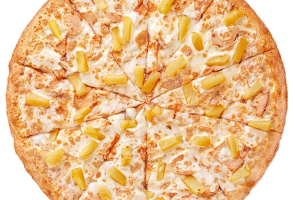 Фирменное тесто, соус кисло-сладкий, сыр моцарелла ,куриное филе, перец болгарский, ананасы.